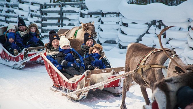 Ден 2: Село на Дядо Коледа и сафари с моторна шейна до ферма за елени