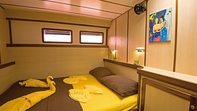 Каюти: 12 външни каюти с душ, тоалетна и вентилатор.
